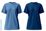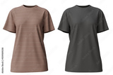 Two women's short-sleeved t-shirts, one light pink with thin stripes, one dark gray, both shown in a 3D rendering