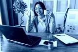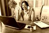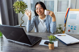 Young Thai Woman Drinking Coffee During Online Business Video Call..