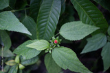 Close-up of a vibrant red flower bud amid green leaves