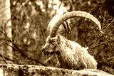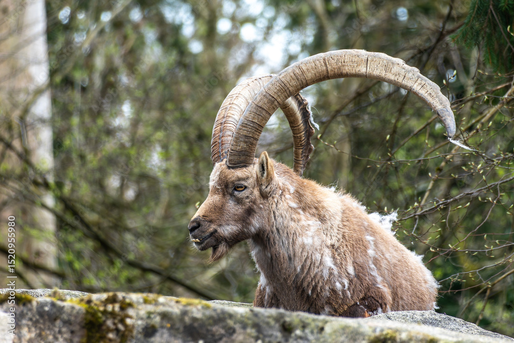 Male mountain ibex or capra ibex on a rock living in the European alps