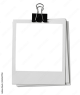 Vintage Polaroid, instant photo frame isolated in transparent PNG, polaroid frame - isolated design element, polaroids with black binder clip.