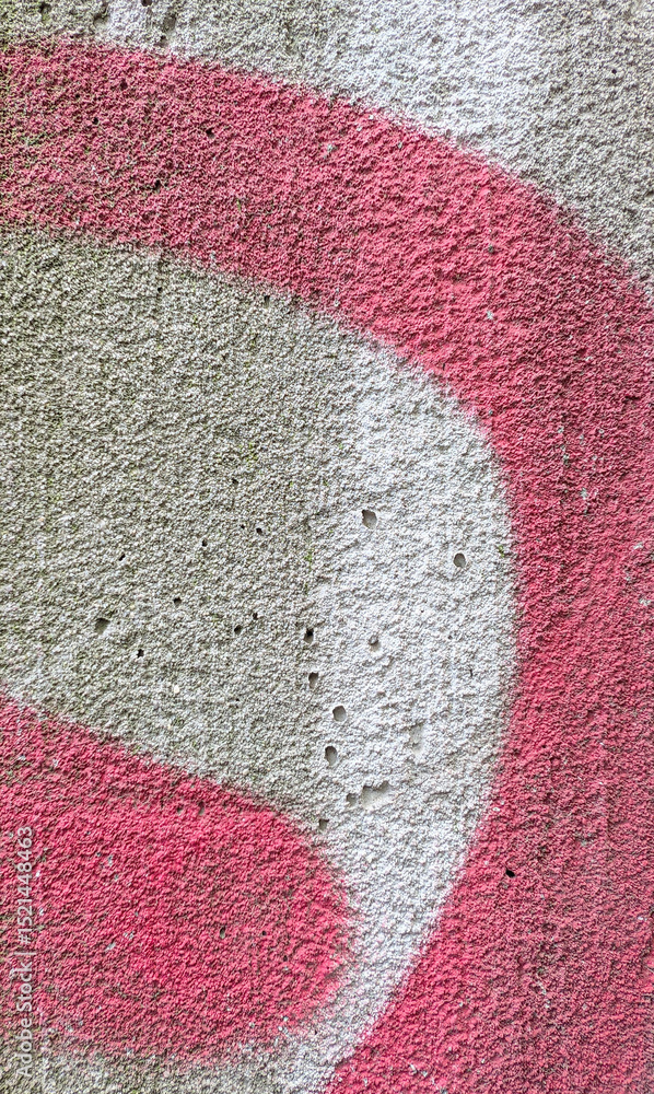 Pink, white spray paint swirling across rough concrete wall, creating vibrant urban art texture with dynamic, wavy pattern