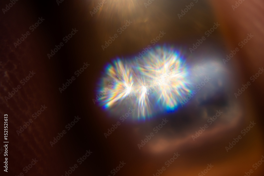 Dreamy abstract image featuring a cluster of radiant, starburst-like light patterns with vibrant rainbow hues