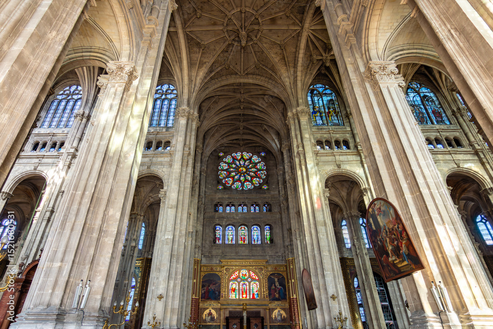 Interiors of Saint-Eustache church in Les Halles, Paris, France