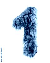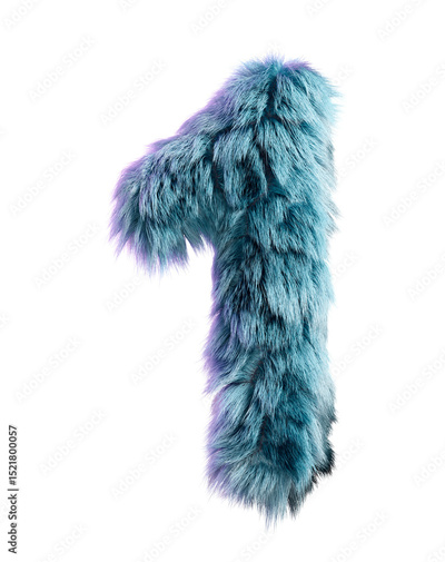 Blue Fur Styled Into Bold Letter 1 Isolated on White Background