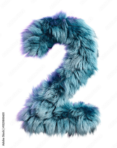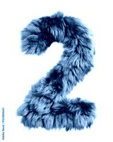Blue Furry Letter 2 on a White Background Artfully Designed