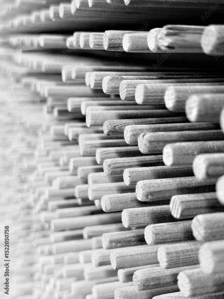 Stack of Wooden Rods in Black and White – Abstract Texture and Lines