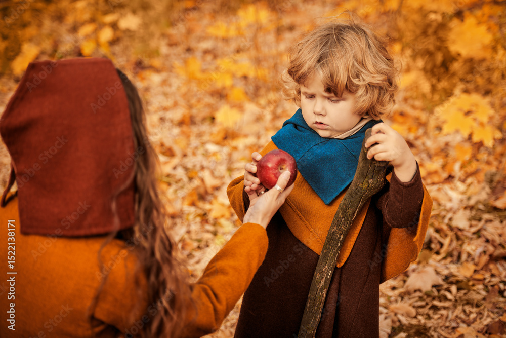boy apple autumn