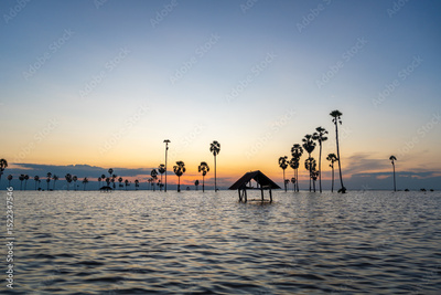 Small hut on Lake Tempe at sunset, Sulawesi, Indonesia