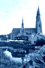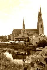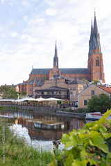 Family with children and pet dog, visiting nortern cities in Sweden, Uppsala