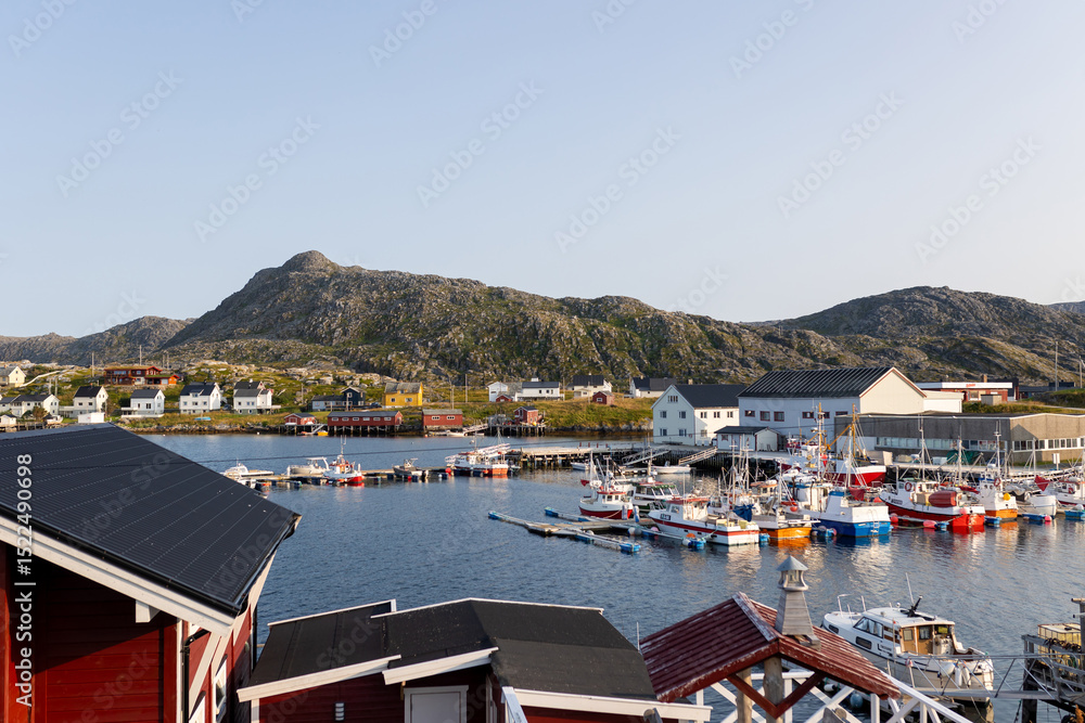 Family with children and pet dog, visiting Nordkapp during the summer holiday