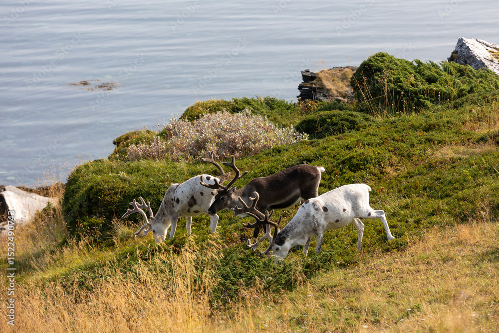 Beautiful nature in Norway, deers and raindeers in nature, walking close to people, wild pure nature