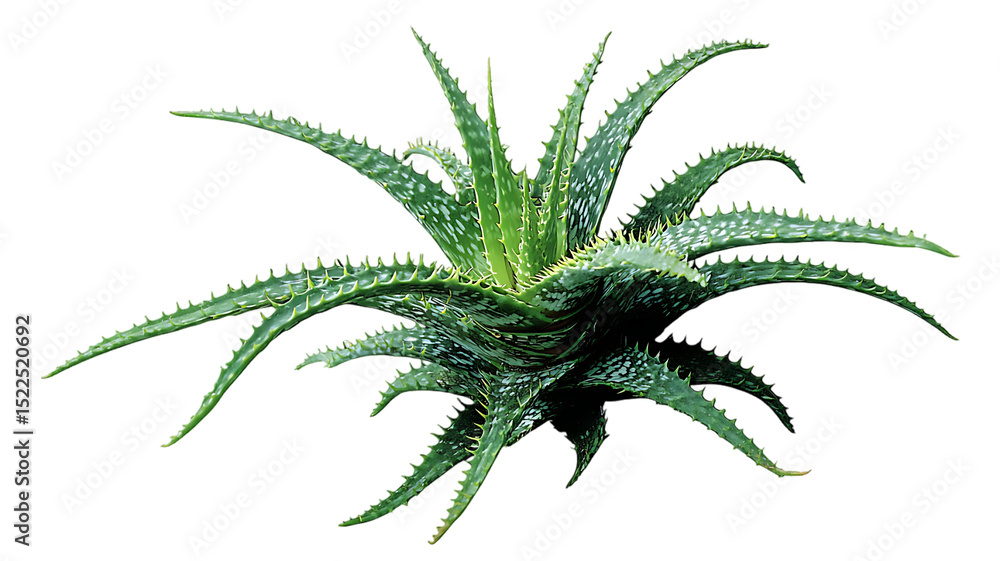 Lush green aloe vera plant with spiky leaves against a black background