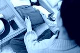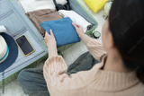 Travel bag. female are checking the detail and quantity of items used during the trip. Young women are prepare clothes and personal belongings. Pack your luggage before tra