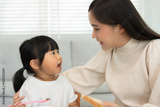 activities together during the holidays. Parents and children are having a meal together, Mother prepare breakfast for daughter on morning, enjoy, weekend, vacant, family time, mother day