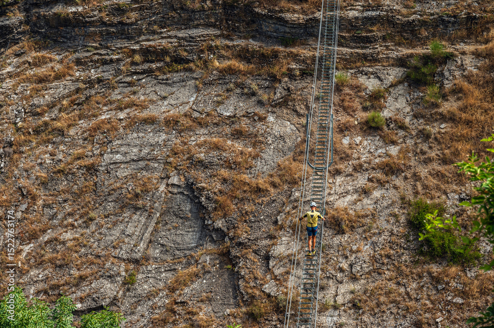 view of the suspension bridge, Sasso di Castalda, Potenza, Basilicata