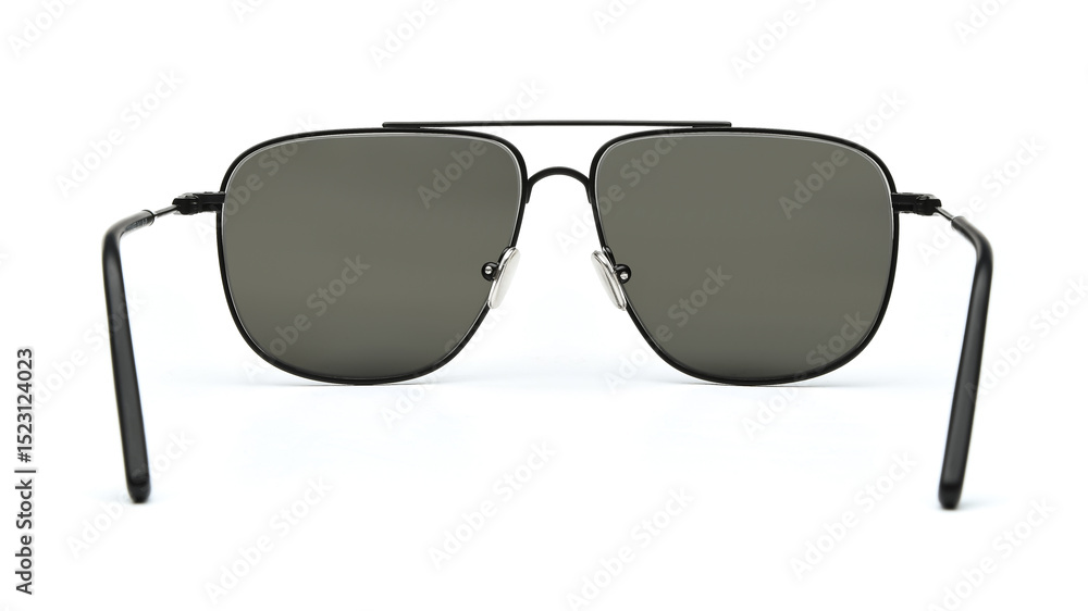 Protect Aviator Sunglasses back view isolated on white background. Eyeglasses with uv lens against sunlight inside view. Glasses rear view modern style for design template and poster