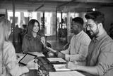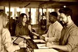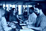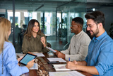 Diverse business team people in office. Happy middle aged female executive leader discussing project management planning strategy working with colleagues at office corporate board group meeting.