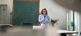 Authentic shot of happy young business woman holding smartphone working standing in office using mobile cell phone, checking financial banking apps, browsing online on cellphone typing on cellular.