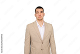 Young businessman wearing suit and white shirt is posing on transparent background, ready to be inserted into any project