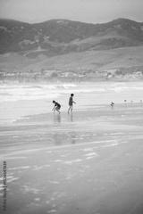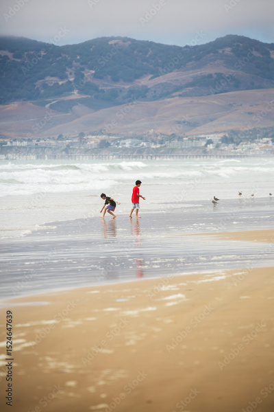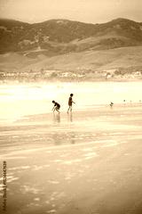Children Playing on a Foggy California Beach