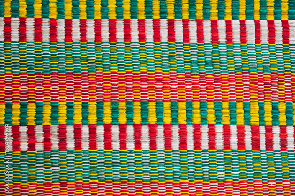 texture of a woven reed mat. background with pattern of woven dyed straw traditional Vietnamese rug