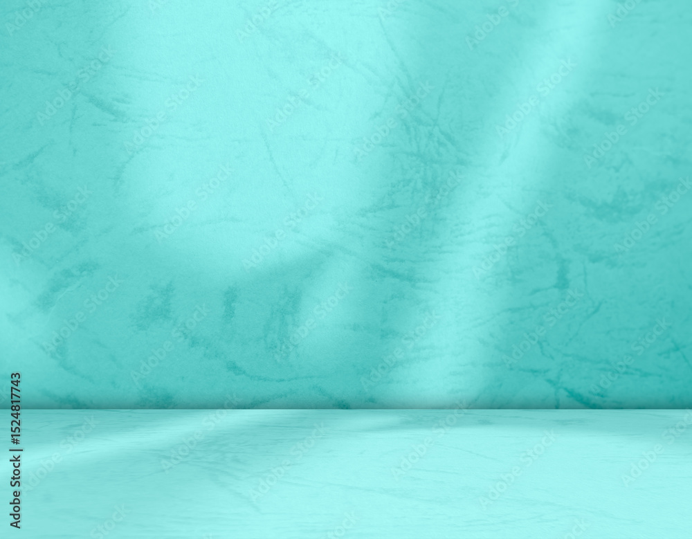 Blue background, wall summer backdrop, studio room loft table with natural shadow on wall floor, mockup pastel abstract interior modern empty for presentation travel product winter spring season