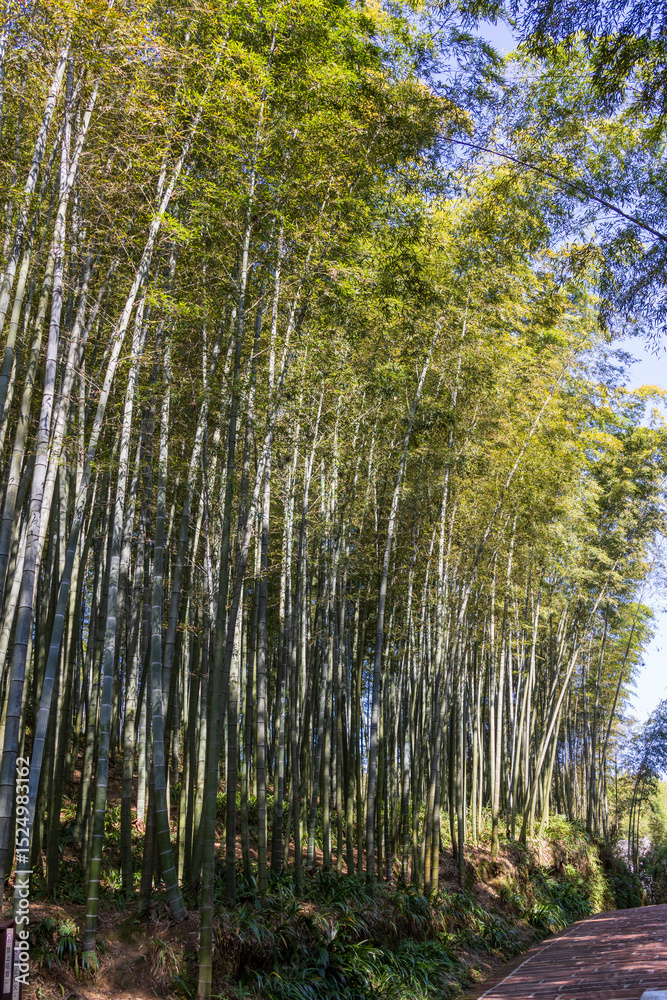 Hangzou, China. 11-02-2024. Walking path in the bamboo forest in the province of Hangzou in China