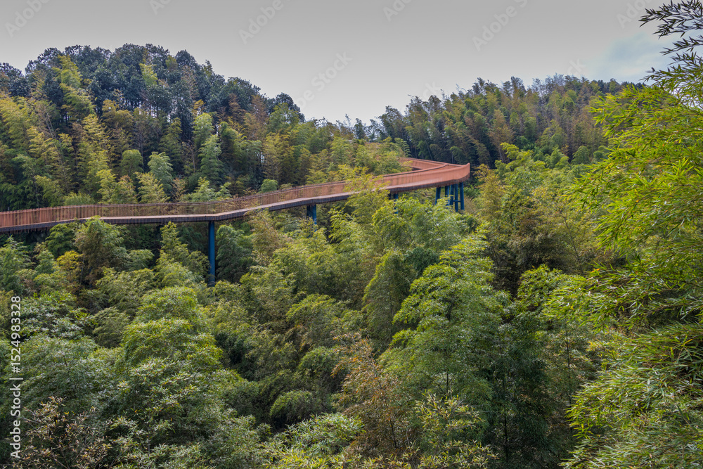 Hangzou, China. 11-02-2024. Walking bridge in the bamboo forest in the province of Hangzou in China