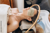 Scalp treatment spa using circulating shower water system for professional head wash therapy.