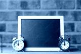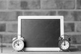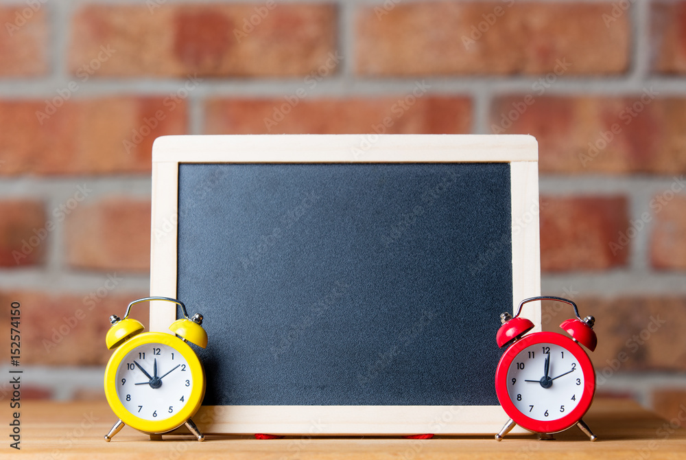 alarm clocks and blackboard