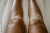Suntanned legs of a woman with knees covered with sand lying on a hammock after a day at the beach during a summer holiday on the Philippines in Asia.
