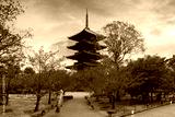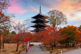 Japanese Woman in Traditional Kimono Dress at Toji Temple in Kyoto, Japan with beautiful garden and autumn foliage