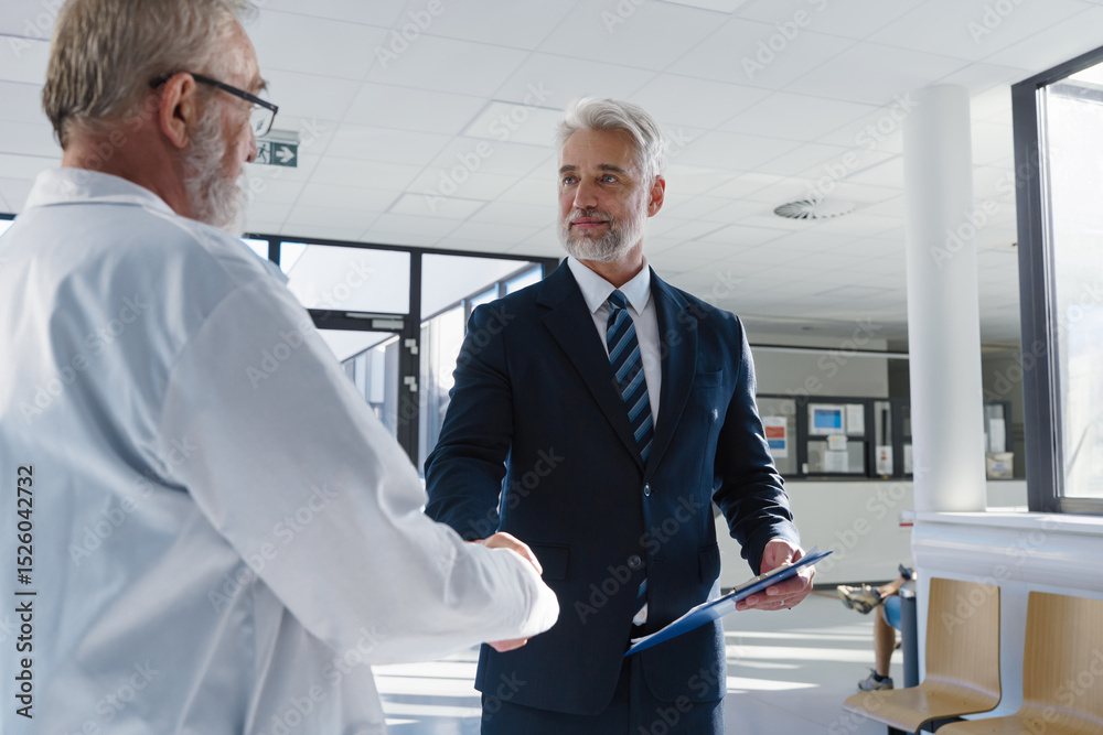 Portrait of manager shaking hand with doctor.