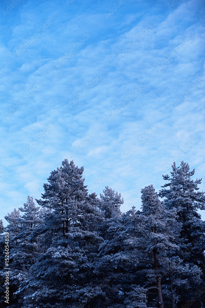 Winter atmospheric landscape with frost-covered dry plants during snowfall. Winter Christmas background