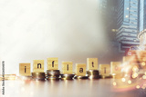 Finance and money technology background concept of business prosperity and asset management . Double exposure city, dollars.