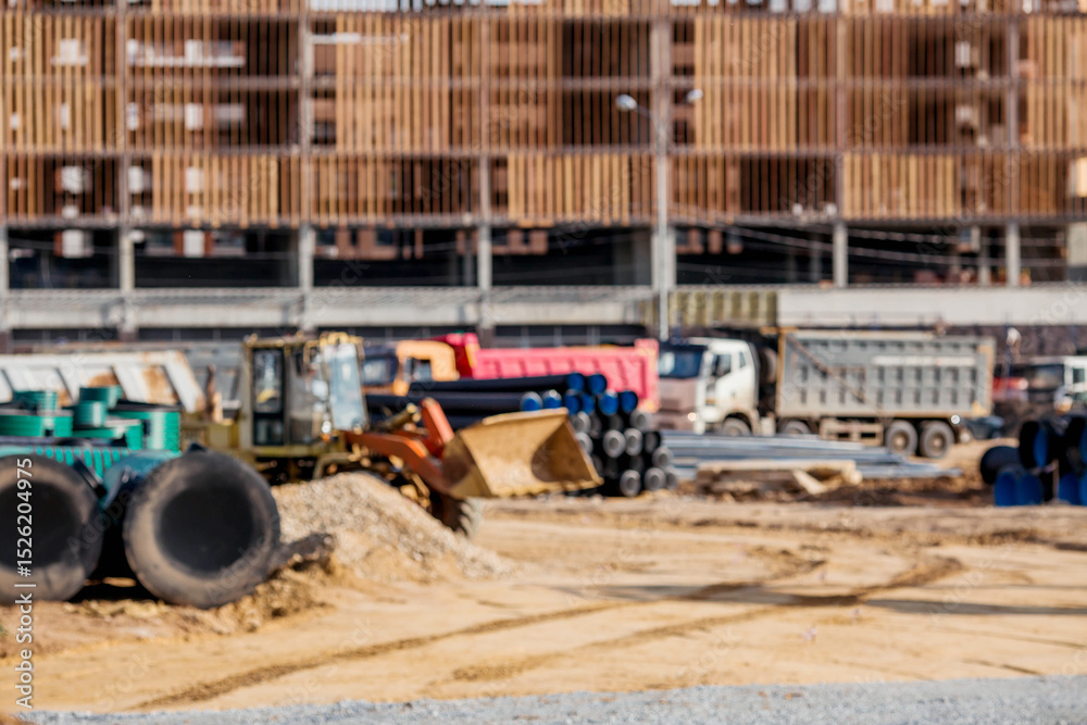 The blurred background of the construction site. Heavy machinery for construction and landscape design.
