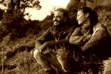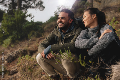 Young couple out on hike in mountains