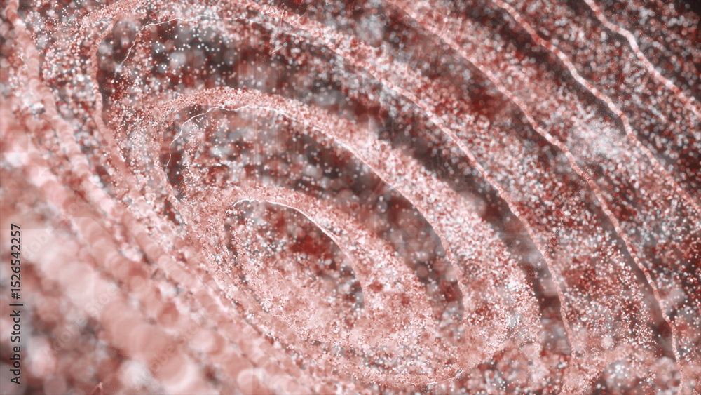 Abstract Red color floating shiny particles futuristic 3d background, glowing glitter particles background