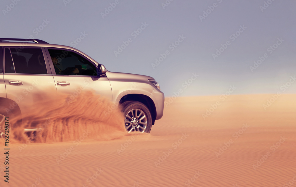 Detailed front view of a car stuck in thick desert sand, emphasizing power, resistance, and the harsh beauty of nature. Great for editorial, auto, and adventure content.
