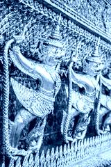 Golden garuda figures at Wat Phra Kaew (Temple of the Emerald Buddha) in Bangkok