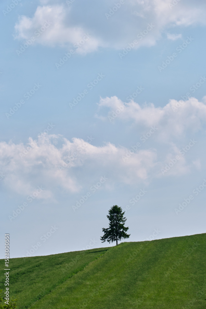 初夏の美瑛町の丘と一本の木 / A Lone Tree on a Biei Hill in Early Summer