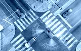 3d top view Illustration of smart vehicle approaching an intersection
