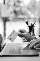 Close-up of a man entering credit card information on a laptop to complete a payment transaction. Online shopping, Payment, Login.