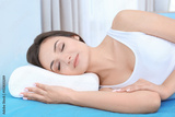 Young woman sleeping on bed with orthopedic pillow at home. Healthy posture concept