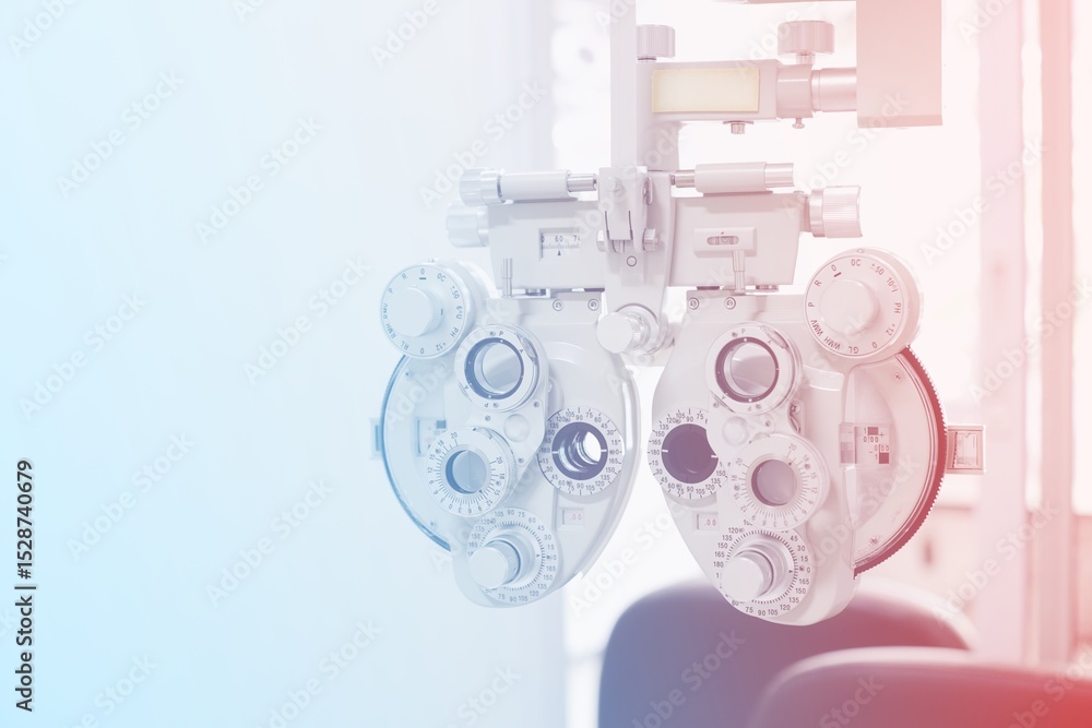 pink and white Phoropter eye exam, eye care concept