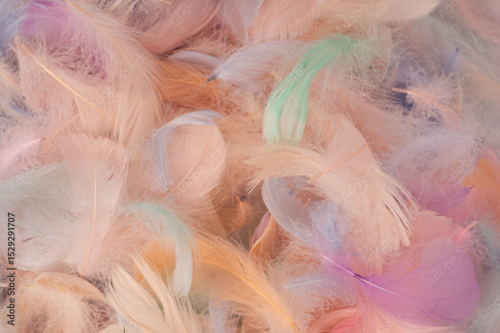 Colorful feather background, top view.