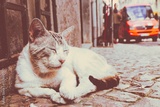 City street cat in Lisbon, Portugal. Retro filtered color style.