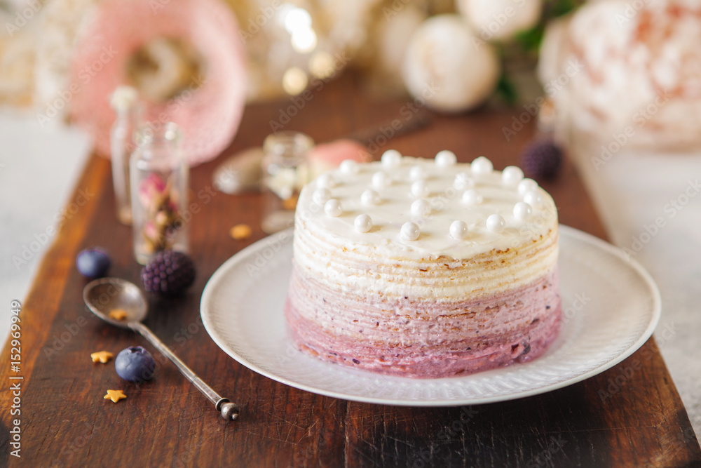 Vanilla and blueberry ombre cake