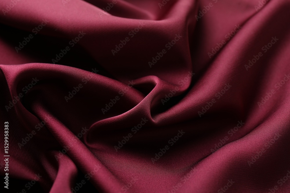 Crumpled burgundy silk fabric as background, closeup